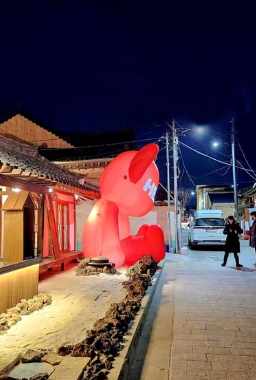 멀리서 부터 빨간 곰돌이가 보여서 신기했답니다
